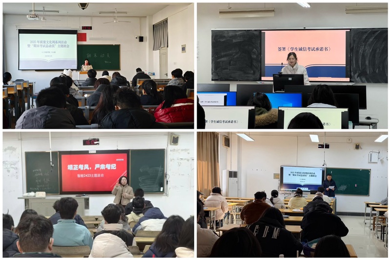 各班级“期末考试总动员”主题班会上,班主任围绕学业指导、考风考纪、综合安全三大板块展开讲解。学业上,明确考试日期和复习计划;考风考纪方面,带领学生学习考试作弊处理办法,全体学生签署《诚信考试承诺书》;同时还开展了宿舍安全、反诈防诈教育,并结合各年级特点部署实习、就业、竞赛等专项工作。