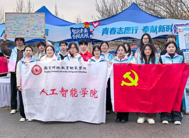 为深入学习贯彻党的二十届四中全会和习近平总书记致中国志愿服务联合会第三届会员代表大会贺信精神,弘扬“奉献、友爱、互助、进步”的志愿精神,3月11日,“博爱·青益汇”志愿服务集市暨2026年志愿服务月启动仪式在我校江宁校区小花园举行。suncitygroup太阳集团网址紧扣“科技助残”核心主题,充分发挥人工智能学科专业优势,打造独具特色的“一院一品”志愿展位,以“技术赋能+沉浸体验”的创新模式,展现青年学子用智慧点亮特殊群体生活的责任担当。